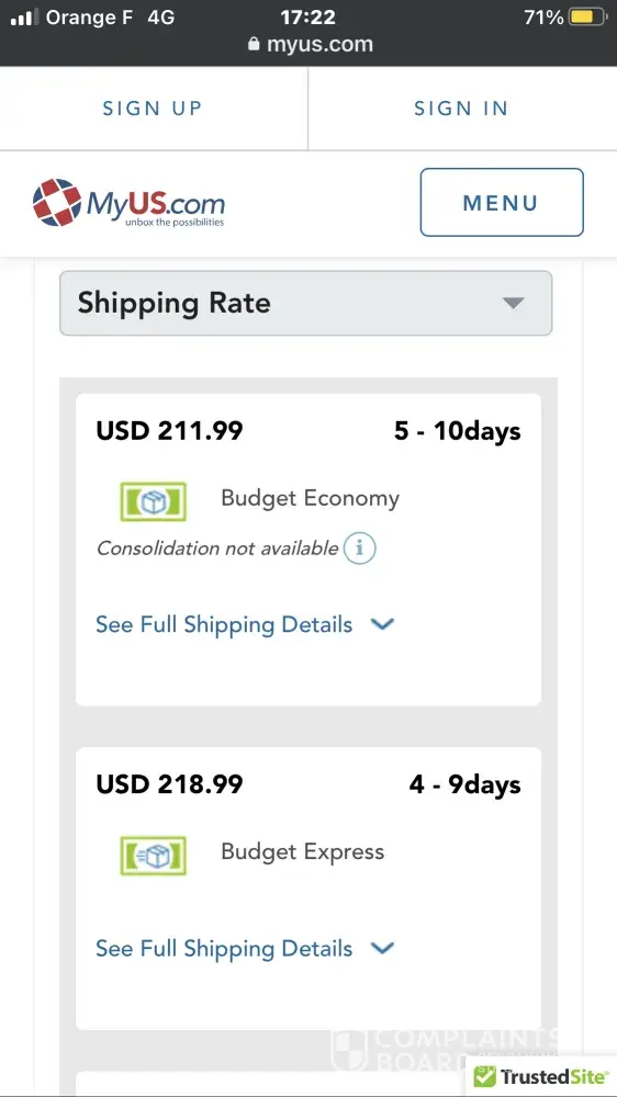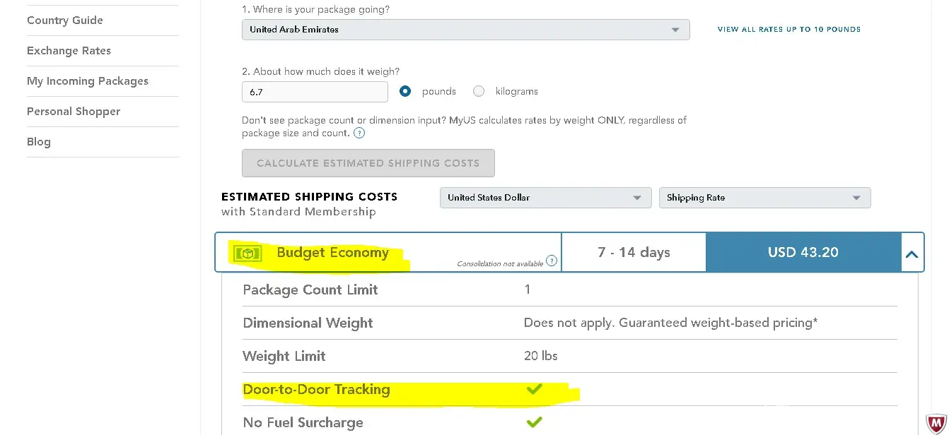 Trying MyUs has been the worst mistake I have ever made. I paid 2-3 times the shipping cost for two packages. The total cost of my items went from 183 USD to over 366 USD because of the shipping costs and Customs fee - the Customs fee was high because MyUs declared goods for 200 USD instead of 90 USD, and I was not able to reach anyone to give me a reasonable response). I asked them to weight a package containing only a 1.7 OZ perfume, declared to be 0.8 lb, the final weight was set to 1.2 lb, how was that possible? And customer service - inexistent, so if you have an issue or a claim to make, forget it, you will only spend days in-front of the computer getting cookie-cutter answers, and by the end you'll still have the same issue or even a worse one. Please, be aware, try other carriers, for sake of your finances. I was totally ripped-off!