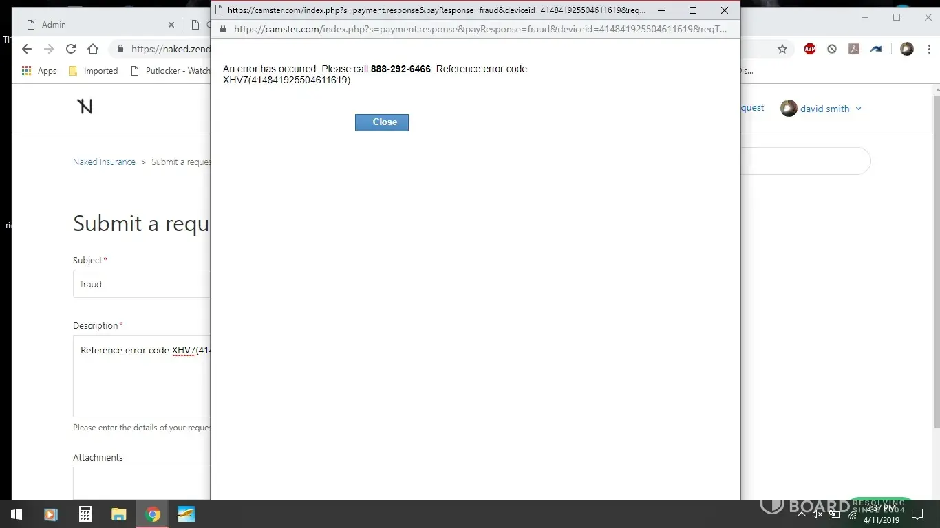 i got this code for no reason Reference error code XHV7([protected]). been using if for year or more, all of sudden out of the blue fraud