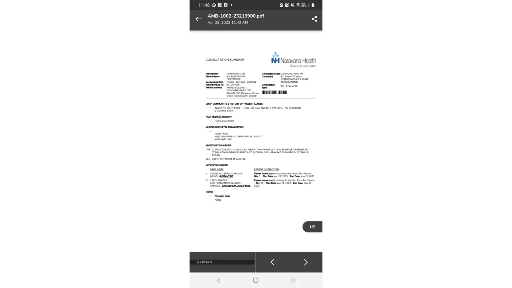 Just for a minor foot injury, they want want to bill customer. Money making business nothing more. I tried connecting with Narayana on this but no action yet and they are least bothered to resolve patient queries post billed.