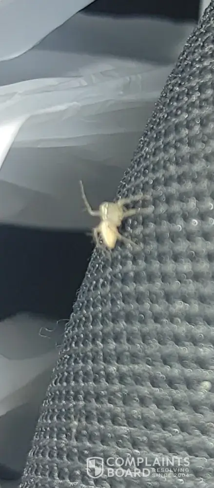 We picked up a 2019 Hyundai Santa Fe from the MCO airport. We were driving from Orlando, FL to Lawton OK. Once we were driving through north FL it started pouring down rain, so we needed to use the windshield wipers. However, they were smearing water making it very hard to see the road. We pulled over to a gas station to attempt to clean the windshield of any grease/dirt/buildup which could've caused the wipers to not work properly. That's when we noticed how old/worn the wipers were. We got back on the road and when we were about to cross into Alabama, we started feeling like something was biting our feet/ankles. We looked a few times, but didn't notice anything since it was at night and very dark. Every few hours we got bit. Once the sun started rising, we stopped again at a gas station in TX and thoroughly inspected the floor and undersides of the seats. While doing that, a small spider crawled up from below the seat. I took a picture of it before killing it. Then we looked some more and found another spider on the floor. For about 900 miles, we were getting bitten by spiders every few hours!