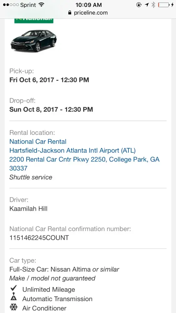 My name is Brandon Dunson and I created a reservation through national rental car for December 11th. Reservation Agreement Number ([protected]).