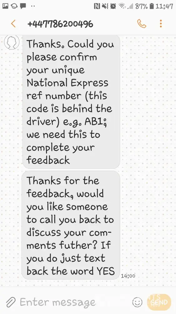So I am very disappointed with the level of customer service from the National Express West Midlands.