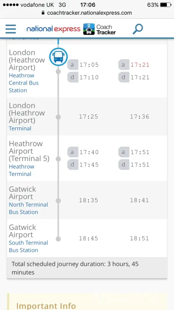 I was scheduled to leave Victoria coach station to Heathrow airport on the 21/8/2017 at 18:30hrs to arrive Heathrow at 19:25hrs.