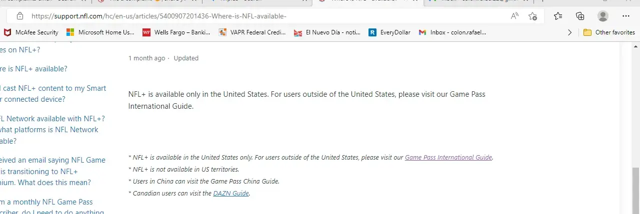 After being a client of Game pass, now I'm unable to watch football like I always do because I'm living in a US Territory? Clearly, ignorance from NFL part doesn't aware that Puerto Rican are US Citizens. Not to mention people like me that works for all our U.S. veterans. I highly recommend NFL to re-considerate this ignorant and clearly discriminating decision in not include us in your app, before is too late.