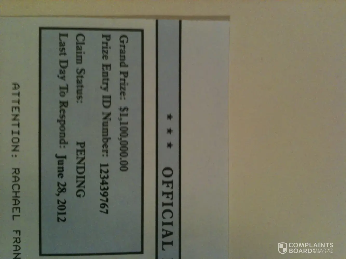 I received in the mail a sweepstakes prize entry for 1, 100, 000.000 with " my entry #" and to call [protected]. So when I called they told me no purchase necessary to enter. Then 3 different times the wanted me to get 3 magazines for 1$ for all 3 and I could cancel anytime. I refused so then they offered me a free 3 day 2 night cruise to the Bahamas, the catch was they needed a payment of 118.00 fee for "International water taxes" and they needed the credit card payment over the phone right then to get the free trip. My bf said no but I really wanted to do it cuz it sounded legit at the time. So I gave them my prepaid visa card that I use for bills, ect.. and I got the card at Chase bank and use it often. the manager got on the phone and told my card was fake! Ha! wow! so my bf told him well that's funny we just used it today earlier. So he then told me to get a real credit card after I told him that's the only one I have and use, THEN AFTER WE TOLD HIM WE CANT GET THE FREE SCAM HE THRETEND MY BF AND I HE WAS GOING TO TURN US IN FOR HAVING A FAKE CARD! THEY WONT TAKE PRE PAID CARDS CUZ THEY CANT OVERDRAW YOUR BANK ACCOUNT! PLEASE BEWARE AND SUBMIT YOUR COMPLANT IF THIS HAS HAPPEND TO YOU!