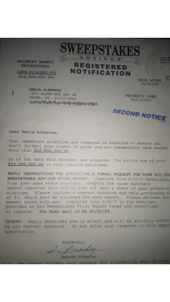 They're sending me letters in the mail claiming that I won a prize this is my complaint and there's a code for that what it violate the Postal Service I'm trying to get money from client isn't that melt fraud