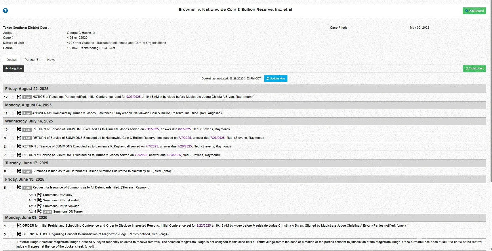 engaged in with me. Those case no. are 4:2018cv04146, 4:2024cv00200, 4:202502520, and 4:2025cv03832. The names of