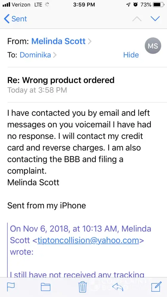 I was about to order from this company when I saw this complaint posted, so I called the company customer service number to see how responsive and knowledgeable they seemed and to ask about their complaint resolution processes. The phone rang about 15 times and then there was a recorded message 'No one is available to take your call at this time, please call back later". This was 10:30 am on a business day. Not going to order from this company. If anything goes wrong, I have no reason to believe I'll be able to get things resolved with this company.