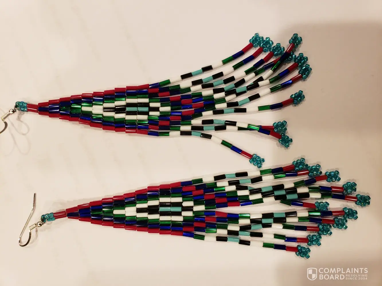 I received a pair of earrings that were not even close to the color or design that I ordered. Color/design ordered appears on tan background. Color/design received appears on white background.