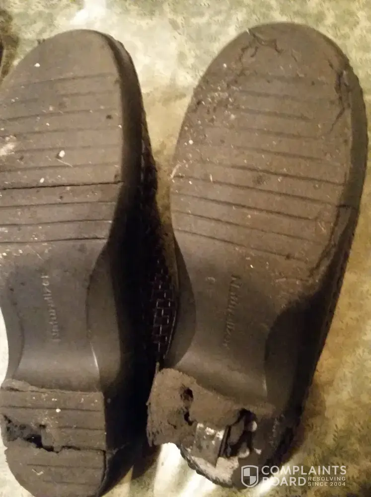 Purchased a new pair of Naturalizer black sandals. Wore them once and they fell apart. Little black pieces of sandal all over the floor. Used to be a good brand but these are disappointing cheap. Can't return at this point.