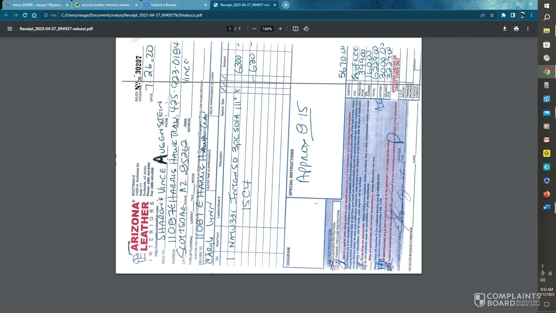 We purchased the Sofa for eight thousand dollars. The consumer should have rights. They basically sold us garbage.