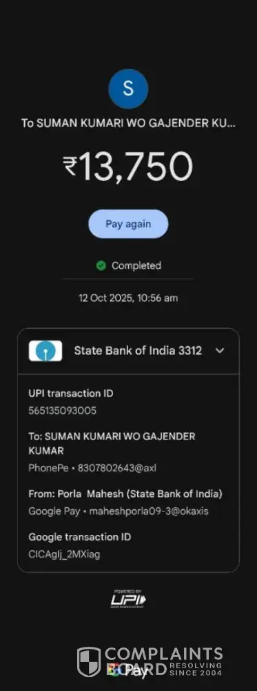 Due to this, I have suffered a financial loss of ₹60,000, along with mental stress and serious disruption to my business operations, as I had already started marketing activities.