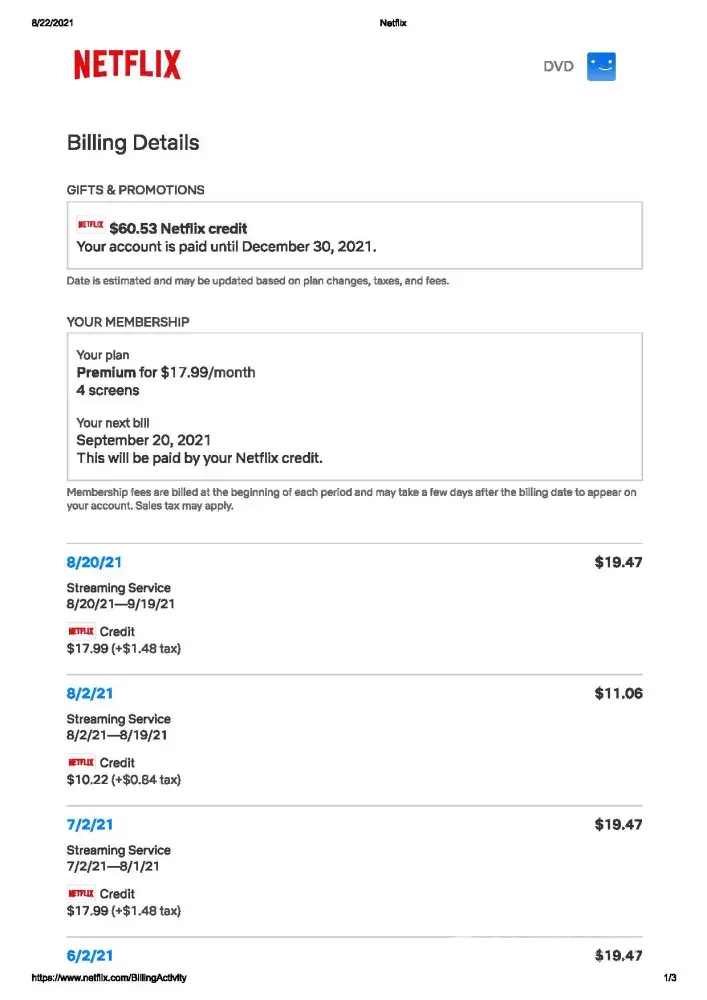 Netflix Inconsistency in monthly billing