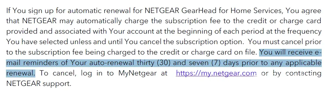 NetGear Automatically rebilled for a service I did not request