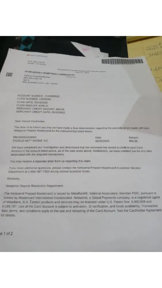 Okay so I recently got a NetSpend card and put some money on it and then I went overseas cuz I'm in the military and I went on deployment, so before I came back someone swiped my card out of my house when my ex-wife wasn't home and spent all my money on that card and they end up disputing their own fraudulent charges and NetSpend rewarded them and give them the credits back so they won twice so when I come home I see some unauthorized transactions and I dispute them and I get shut down. Then they send me a check for $5, a slap in the face and close my account out I'm missing $300 I serve my country and I come home to this stuff check out the addresses I wasn't even the states when this went down
