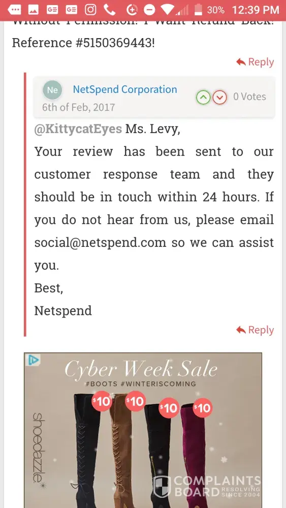 Your review has been sent to our customer response team and they should be in touch within 24 hours. If you do not hear from us, please email social@netspend.com so we can assist you.