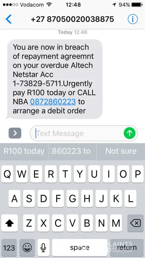 Over the last couple of months, I have received numerous calls from NBA regarding an Altech Netstar account. In spite of promises to have my number removed from their system, I today received more calls & sms’s. Some just missed calls... Who has the authority to remove my number from your system if at all? Pure harassment and invasion of privacy! Sort out your house money hungry corporate!