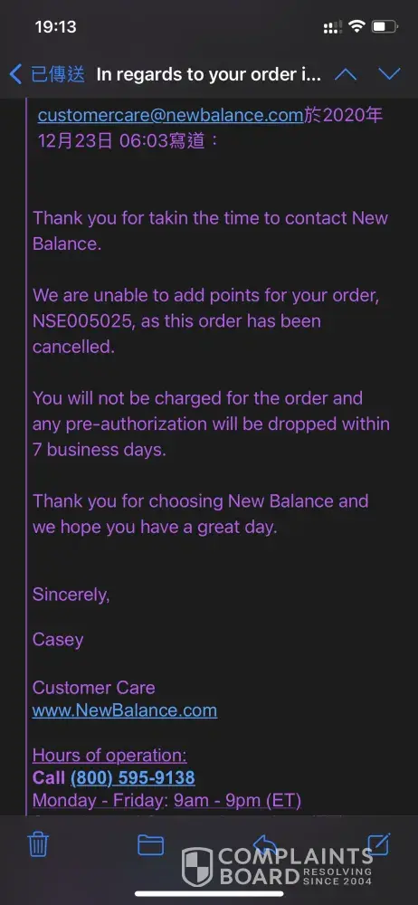 38 New Balance Athletics Complaints