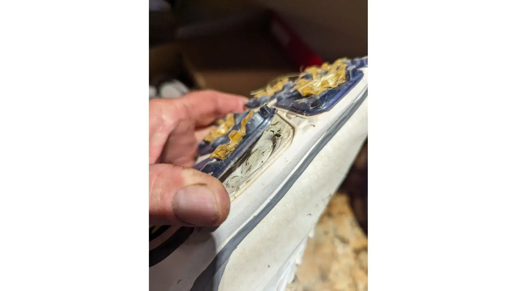 New Balance has numerous complaints about this and has since changed the design. I filed a complaint sent in pictures and after a couple months was asked to send more pictures. I never received any other notifications since then. I have another pair of NB golf shoes and 4 pair of NB running shoes. I have 3 married children and 8 grand children who all are very active and all wear NB Lacrosse Basketball Football Running etc shoes. All I wanted was to exchange the shoes. They are like new and NB would not honor a defective product. I have been using your running & golf shoes for a couple decades but I won't buy and my family won't be using NB anymore and I am sorry to say that.