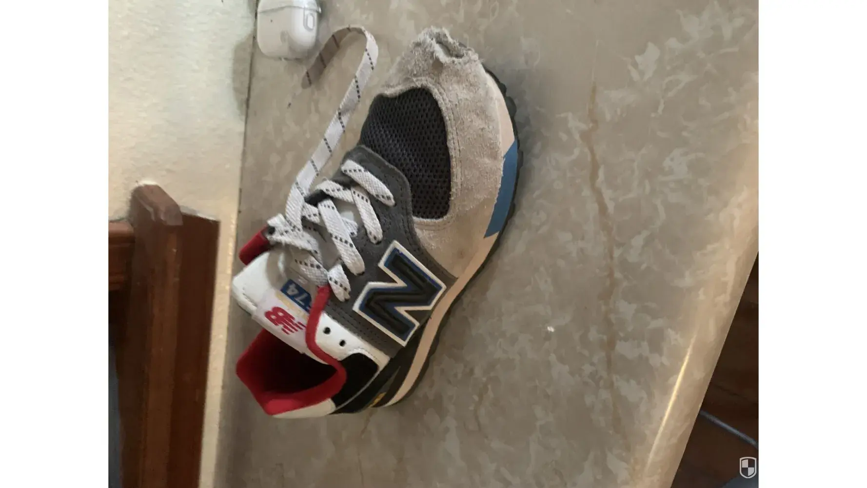 I recently bought my son New Balance 574 Athletic shoes on 10/13/2023 at Journeys Kidz , size 2 M. He was very pleased with them because they fit him perfect. He probably wore them for about two weeks and the right shoe tore from the front. These shoes are perfectly still new but the right one just tore. Attached are the pictures of the shoes we had bought. You can see that my son did not drag his foot or anything like that because there is no sign of scratches. We are very disappointed what happened since his doctor recommended this brand of shoes because he has flat fleet, and these shoes will not hurt his feet. You can also see that the shoes soles are still new just like everything else on them except for that tear in the right shoe. Very Very disappointed.