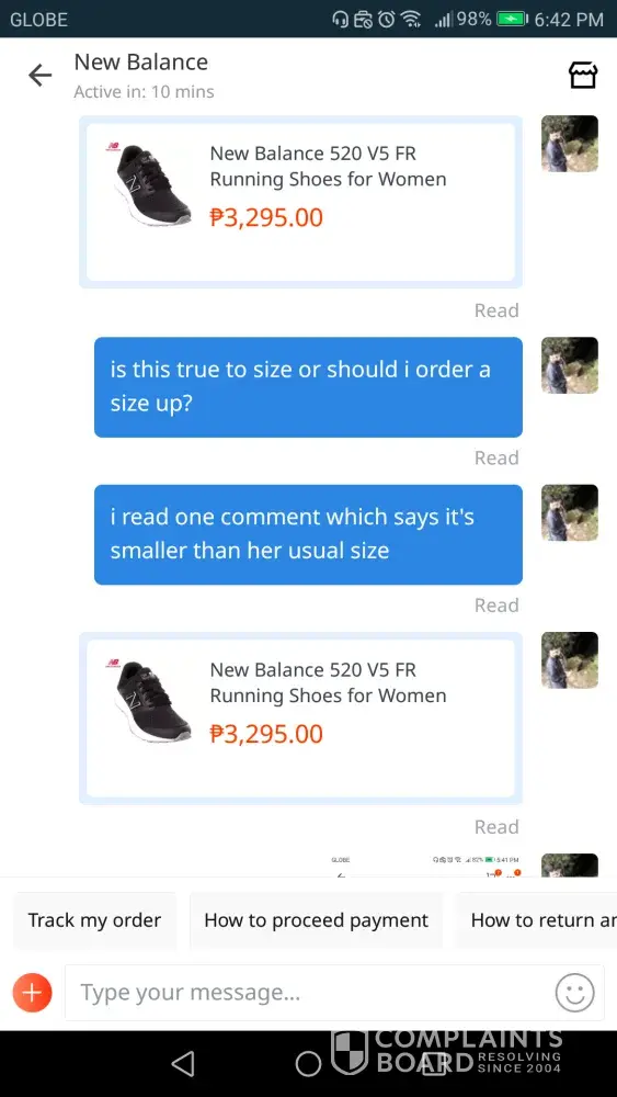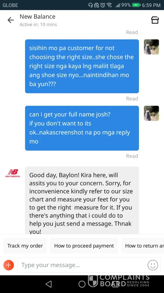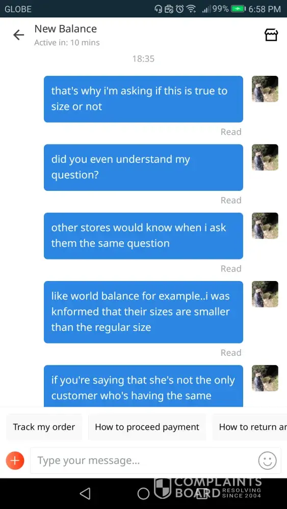 So I sent a message to inquire. A certain Josh replied that I follow their size chart and that the customer did not follow her shoe size correctly. So I asked him how did he know that she chose the wrong shoe size when in fact she did choose the right shoe size? He answered he just knows the reason why because she's not the only person who experienced the same situation. So I told him, if that's the case shouldn'yt you inform your customers to choose a size bigger than their regular size instead of assuming that customers are making the mistake.