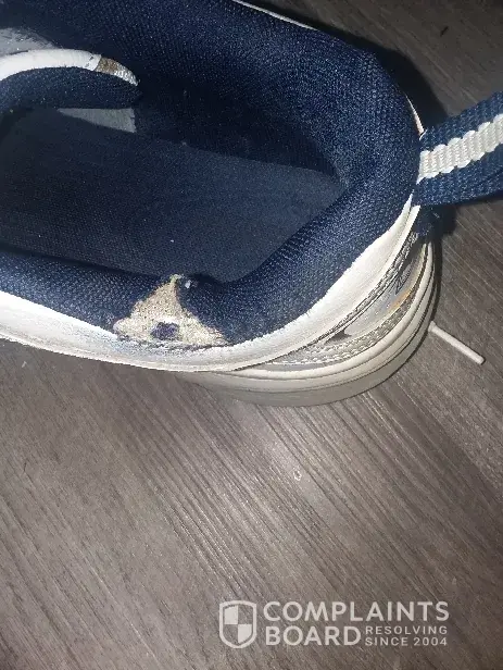 Complain about a problem on 327 shoes 2 pairs last less than a month and solution is voucher 10% discount instead of checking real proble of the fabric that is ripped