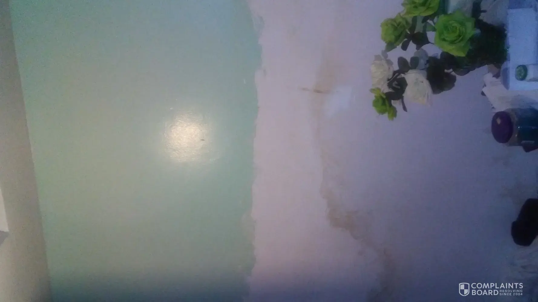 You can even see the waters drip stain coming in from outside and paint peeling, bubbling caking white substants forming on wall. Why do I have to live like this, nobody should while paying their rent in full all the time. SMDH
