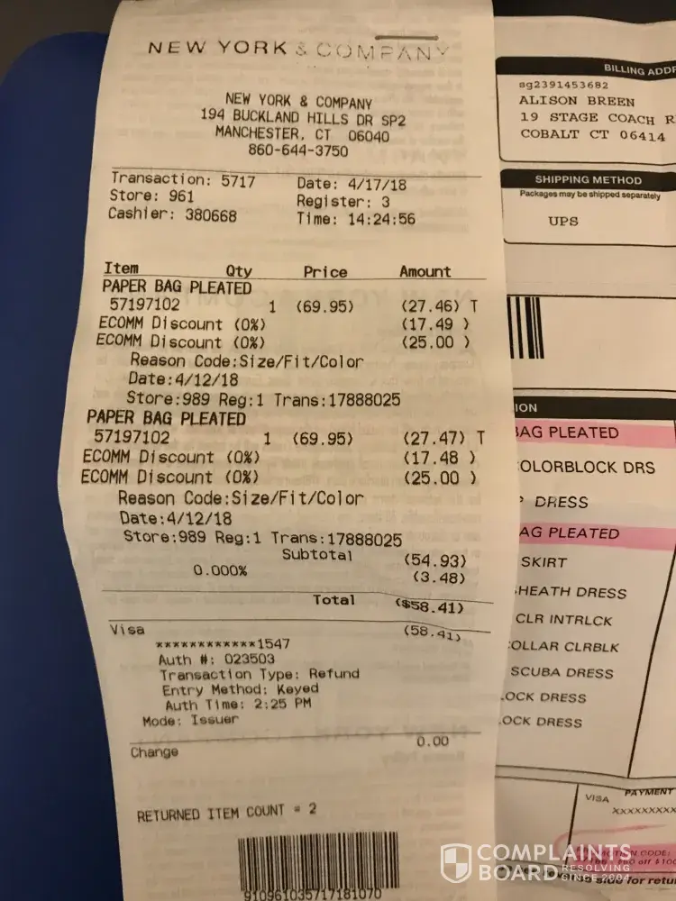 I recently purchased several dresses from the New York and Company store in Westminster, Maryland. Several in June and some several months ago. However, after I wore the recently purchased dresses, I washed and dryed them accordingly, however, these particular dresses shrunk about 2 inches in length and all over to the point where I can no longer wear them . Over the years I have never had a problem with the other dresses and items shrinking. Be advised that approximately 80 % of my wardrobe is from New York and Company and have never had a problem until recently. I was going to just throw out the first dress I purchased after it shrunk but after two more dresses shrunk I decided to go back to the store where I purchased them just to exchange them for the exact dress and color. However, the store manager said that since the tags were not on the dresses that they could not return or exchange them. She said that the dresses had to be in the original condition. I told her how can I return them in the original condition when I wore the dress (took off the tags) and the problem occured after I washed and dryed the dresses. She just said sorry and I left. Now I have three summer dresses (which I love) that I can no longer wear because they are too tight and too short. I would appreciate if I be allowed to just exchange them for the exact same dresses (which the store still has). Please let me know how this can be handled. I hate to stop buying my dresses at New York and Company for fear that I can only wear them once because they will shrink after washing them. Please contact either by email at [protected]@comcast.net or [protected]. I only have the receipt for one of the dresses that I purchased in June, 2018. I can not locate the other receipts.