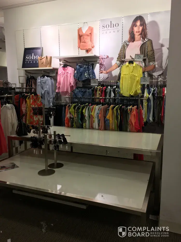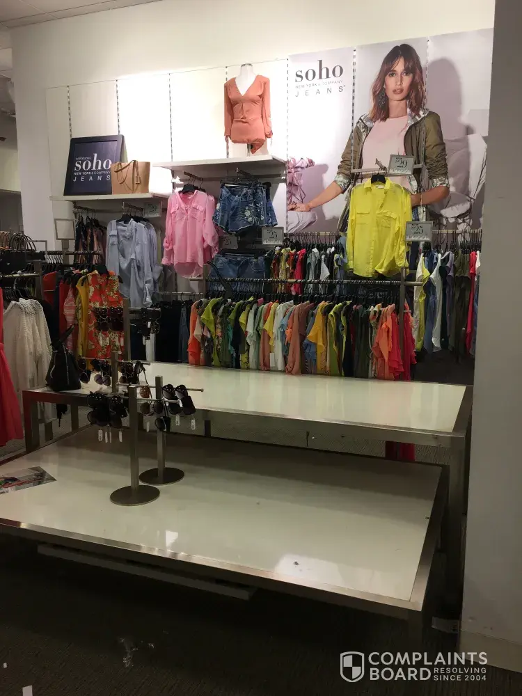 My frustration began because the store is so disorganized and you cannot tell what's on sale and what is not. All clothes are on same rack and no signs. You have naked manicans, empty tables no nice displays. It's always hot in there, some lights work and some do not. Carpet entrance is so nasty. There is marker writing on wall that has been there for months. The jewelry is not even displayed nicely. So very disappointed. There is always 2 employees when I visit so it's impossible to keep store clean and help customers. When items are on 60%off rack then you go to check out, the employee apologizes and says it was in the wrong place.