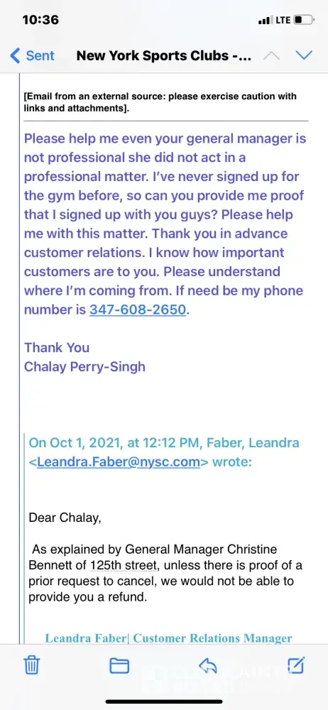 Please help me even your general manager is not professional she did not act in a professional matter. I've never signed up for the gym before, so can you provide me proof that I signed up with you guys? Please help me with this matter. Thank you in advance customer relations. I know how important customers are to you. Please understand where I'm coming from.