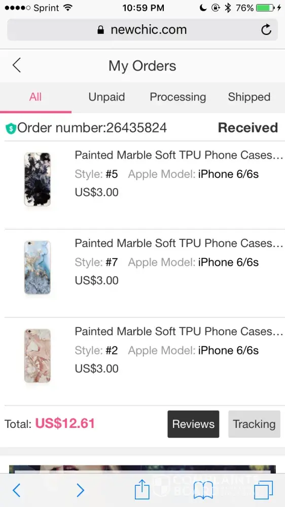 I ordered three phone cases from this website, not only did they take forever to provide a tracking number but I never received the products I ordered, yet a month later it says on the order status on that website that I received but I haven't. I want a full refund back on my card. NEVER ordering from this website again.