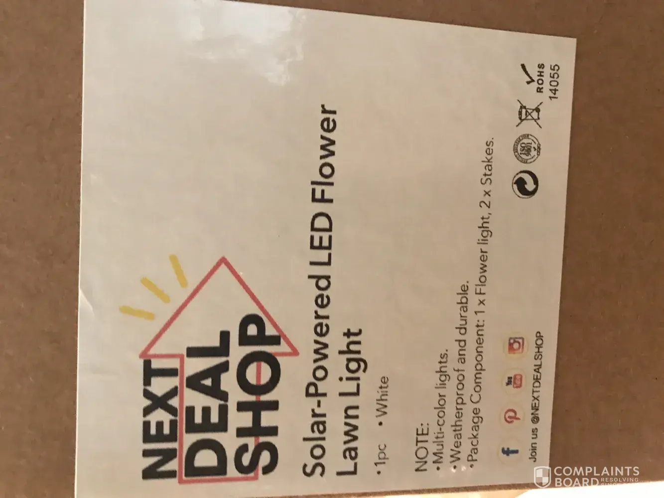 I purchased 6 of these flowered solar lights and sadly not one works I've contacted the Next Deal Shop on several occasions and I've not recieved not one response to my emails... this is sad and I'm upset and it seems like there's nothing that I could do but accept the fact that Nest Deal Shop is a fraud and pitiful company... u see I'm requesting working lights. But now I want and request a full refund ASAP