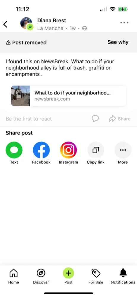 We were victim of a crime. I posted to warn neighbors and see if anyone had info on the perpetrators. Next door removed the post. Punished me for all the incoming posts that agreed the perpetrators were trespassing. I received a lot of good suggestions before they shut my account down. And Nextdoor aloerf the perpetrators mothers to stalk and harass myself and neighbor. Why didn’t Nextdoor protect us.