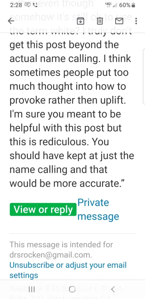 The guy that asked for help didn't hurt me and he doesn't deserve to be denied information that may help him. You can rest assured I do not want back on Nextdoor and hope I am never in a position where I don't want to do the "right thing" and help a neighbor because I now hate unknown neighbors and their little neighborhood online pettiness.