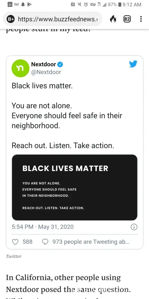 Agree. I found out their (Nextdoor) Twitter post evidence online which shows they support Black Lives Matter, a Marxist movement.