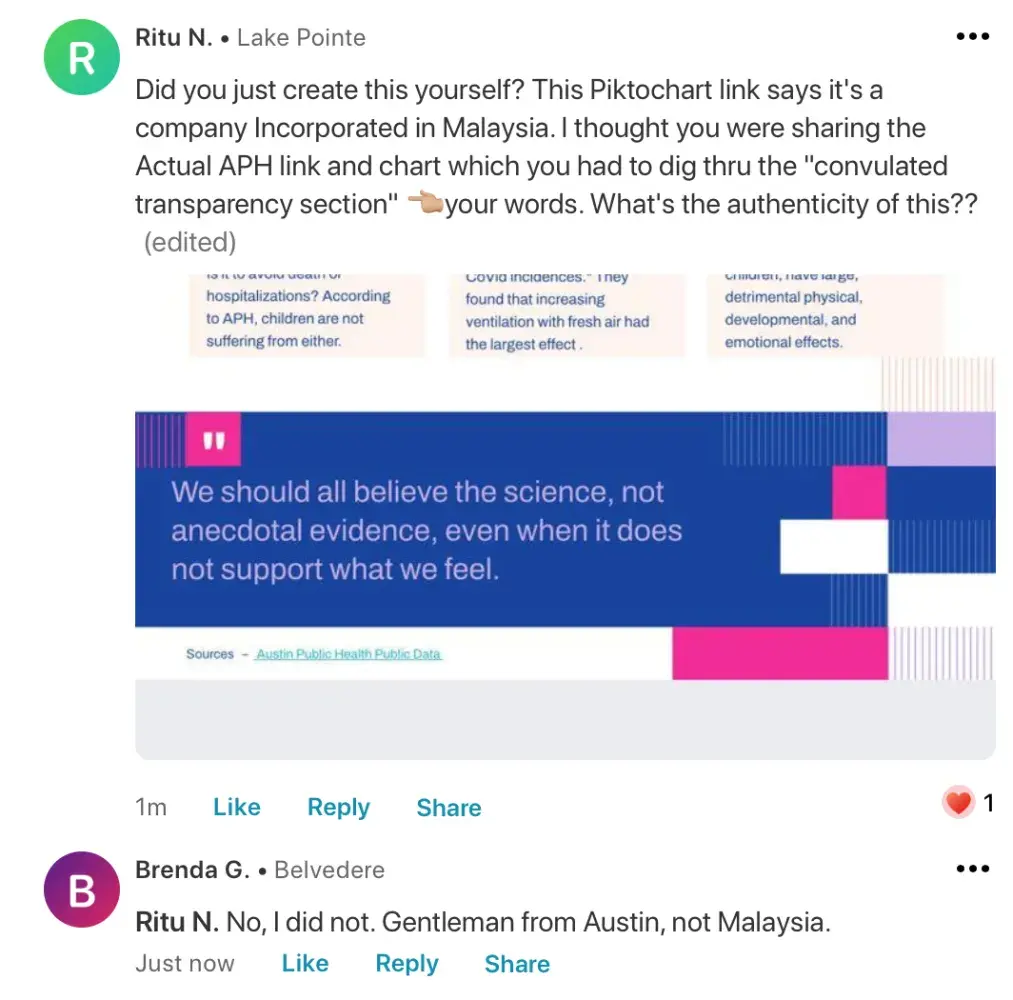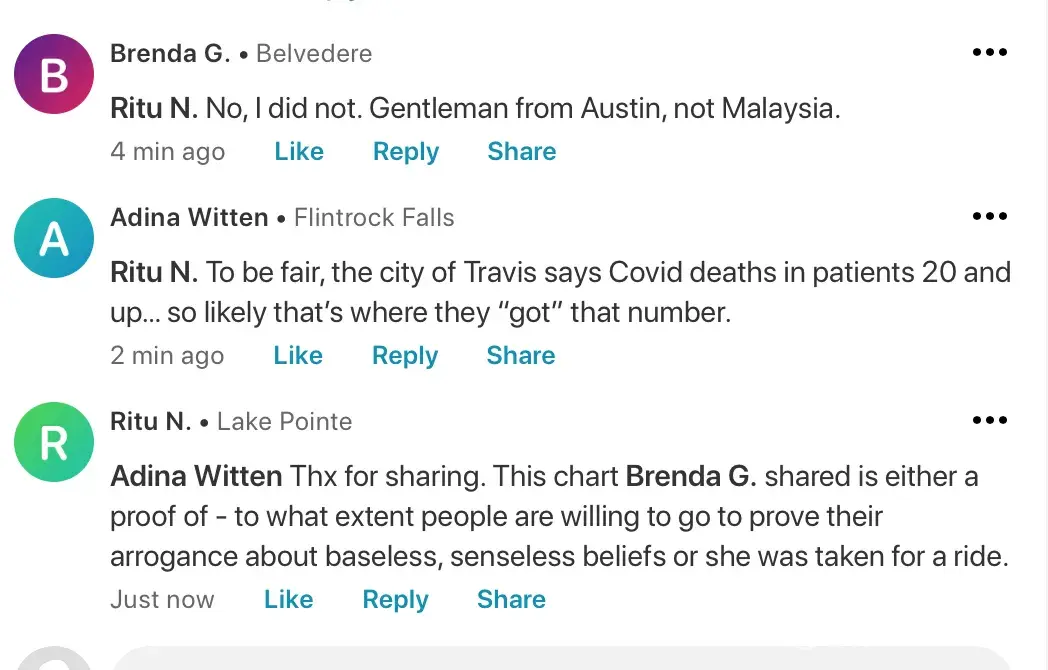 In two posts where I questioned the"massive"COVID-19 death toll, I used material I found on the CDC's own website to refute it and I included links. If it came from the CDC, how can it be"misinformation"I asked the moderators? None of that mattered to the moderators. They deleted it.