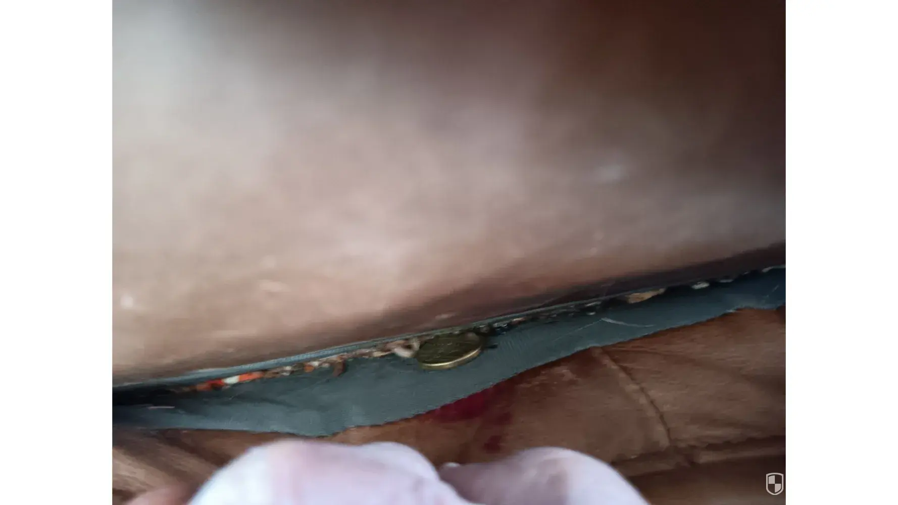Filked with so much dirt, food scraps, pen pencil hair ties, the couch we bought from Nick Scali is definitely one that has been used for years in someone's home. Popcorn pieces, tv snacks carton etc and such a build up of dirt there's no way it is new!