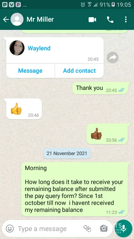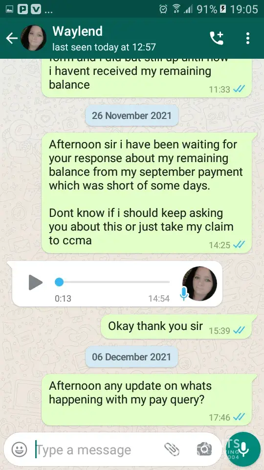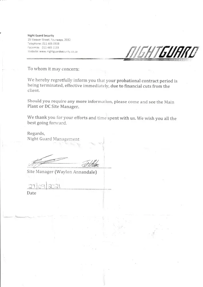 I started working at night guard security on the 13th of september 2021, on the 27th i was retrenched due to financial cuts from the client. Month end of september my payment was short with few days. I contacted the manager and went to fill a pay query but till this day i havent receied my remaining balance. Its been three months being ignored by them.