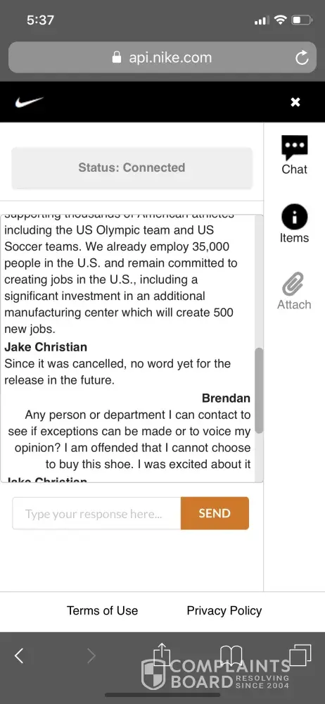 Below is a respectful conversation I had with a Nike employee. Unfortunately he could not even tell me who I could voice my displeasure to.