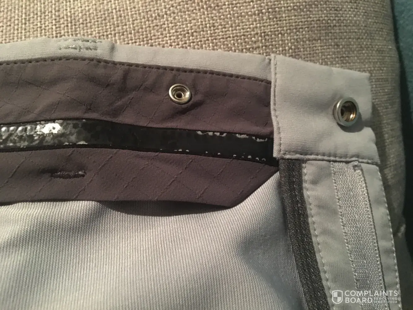 I would return the shorts along with your receipt to the store of purchase (or call if it was purchased online). However if you no longer have your receipt (or possibly even if you do), I doubt they will be able to do anything for you since it has been 5+ months and there would be no way to prove that this happened due to manufacturer error.