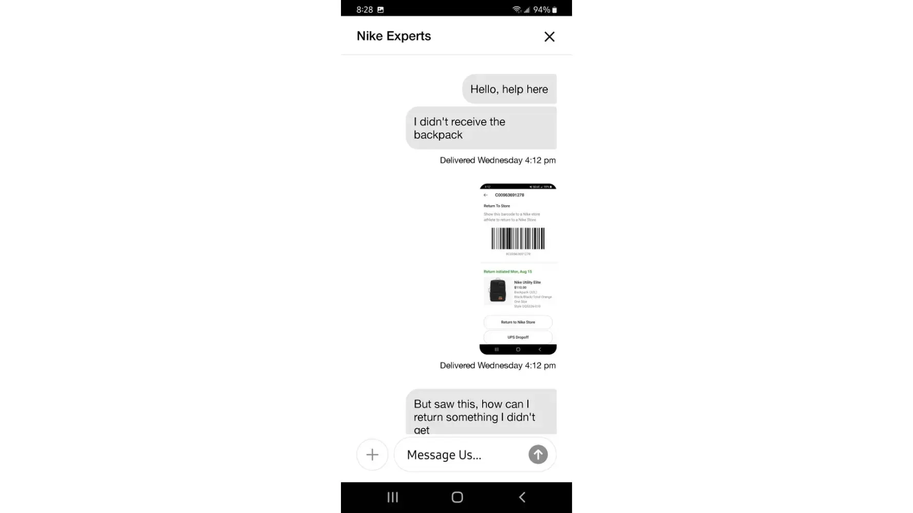 The young man told me to send the shoes back and they would give me a refund. I contacted the company on March 13, 2022 to see the status of the return and spoke with a lady name Jessica who said they had authorized my return, then on March 14, 2022 I received a package via UPS from Nike and they sent the shoes back to me saying " Unfortunately, they were not going to send me my return as the item does not meet their return policy. I am not understanding how a shoe that a customer cannot wear that cost 219.00 doesn't meet their return policy.
