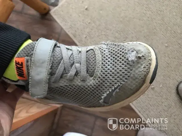 I purchased a pair of Nike shoes for my son from Kohl's in September. They were only worn outside until November, then were strictly inside until April and have now been worn outside again for the past month. I've always bought Nike shoes for myself, but am extremely disappointed in my son's shoes. I've attached a couple photos for review. Both shoes have basically disintegrated, leaving several holes around the toe of the shoe. I would really appreciate resolution to this defective product, whether it be a gift certificate toward new shoes or a new pair of the same shoe sent to me, whatever protocol is...I look forward to hearing back from you -