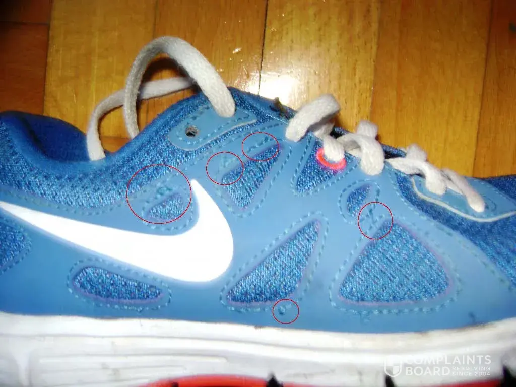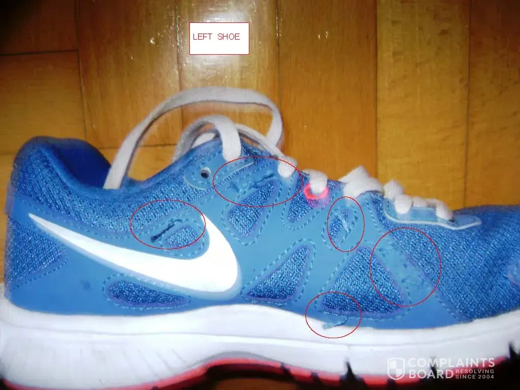 Pls., Check the attached pics about Nike sport shoes quality. And I have many pairs in the similar condition. All of them, almost new, without any further usage. 2 / 3 times use and become to tier in parts.