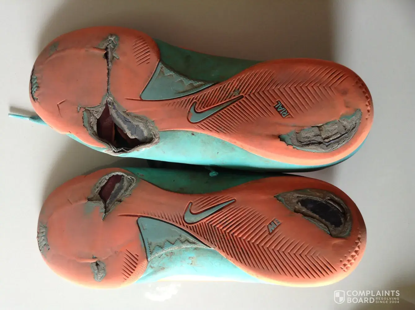 I had bought Mercurial brand of shoe from Nike... This is meant for playing concrete football... Within 3 months of purchase the sole of the shoe.complete torn off... Tried to reach different Nike shops without any help.. Even planet sports where I purchased this from said they can't help and it happens with this shoes... If that is true then Nike has been cheating us by taking high price for a product with a specialised feature in it! They claimed this to be for playing in the concrete when other shoes would last longer than this If played in concrete... I would like Nike to compensate for the loss of money and also for the cost of trouble and mental agony we have gone through..