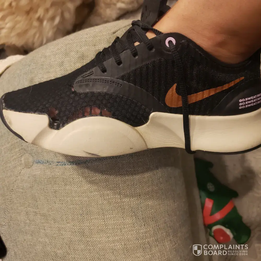Nike superrep sneakers ripped by inner big toe on both right and left shoe