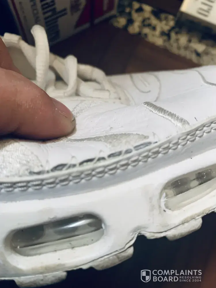 I drought a pair of white on white tn air size 9 last year and paid $ 170.00. I only wear the sneakers when we go somewhere nice. On the right shoe at the bottom. Where the leather meets the soul of the shoe you can see the repair that Nike performed. There is a 3 inch slit or cut that was sown back together. I have tried to take the shoes back but was told because I purchased them a year ago they couldn't help me. I am extremely disappointed in what Nike tried to get away with and how I'm being handled. Instead of giving me a replacement pair they took my money gave me a defective product and don't care. I love my sneakers and only wear Nikes for over 45 years now I have to fine a different brand. Please help