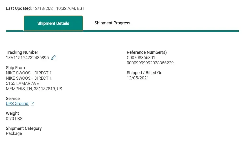 I've been trying to get an answer from Nike and UPS since them, and since then I did not receive any other official feedback from my claim until today's response from Nike saying that they will not replace or refund the item.