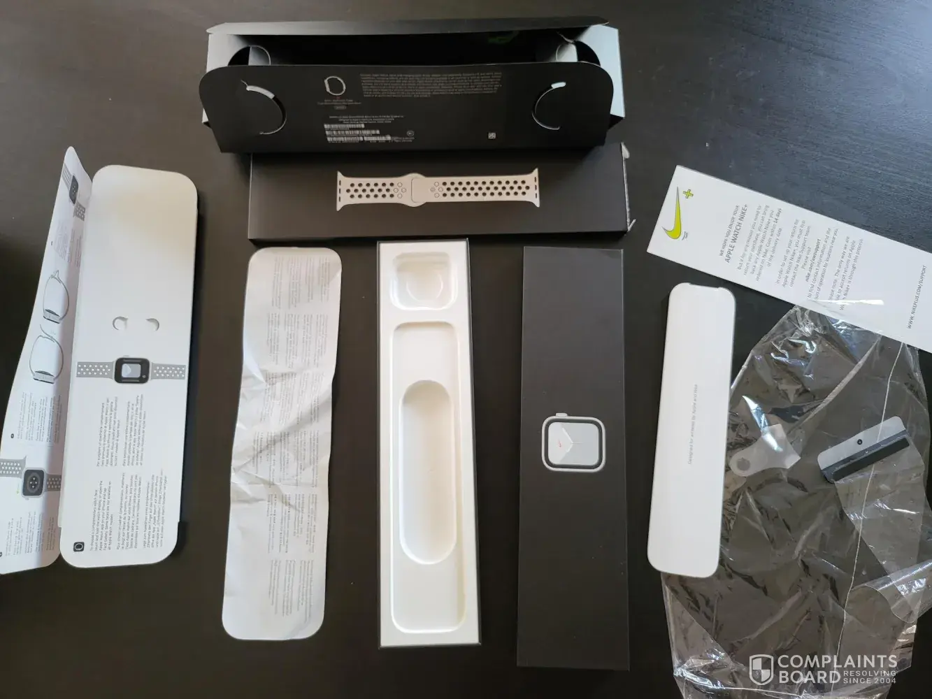 The Nike Apple watch itself and all the valuable package accessories such as cable, charger, etc. were removed from the Nike Apple Watch case box, and only the papers and case box itself.