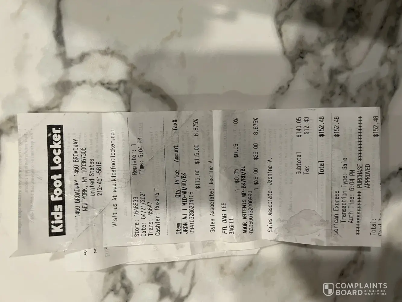 Attached are photos of sneakers damage and copy of credit card receipt
