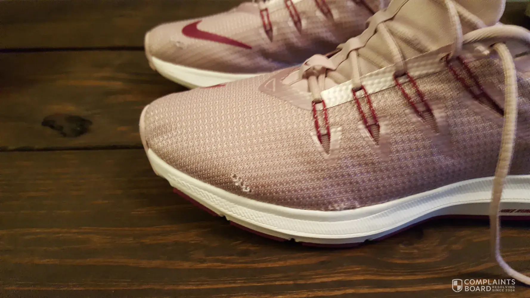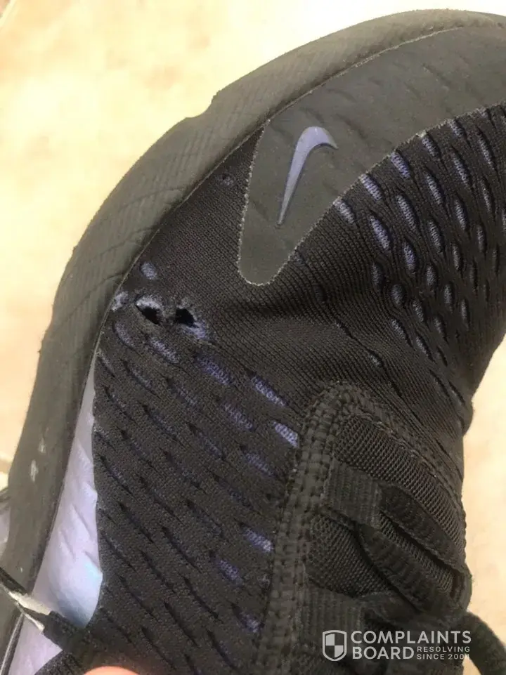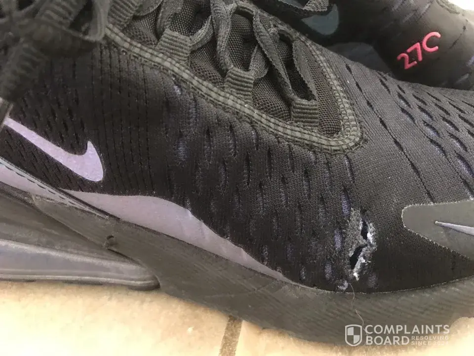 Hello, my name is Ty Climer and I am writing for my wife who bought a pair of Nike shoes at a Foot Locker store in Lafayette, Indiana in April. I don't think Foot Locker will do anything if we complain to them, but my wife has only been using these shoes for normal wear and exercise, but they already have holes or tears in the side by the toes. This should not be happening after less than 6 months, right? We wanted to let you know if anything can be done about this.